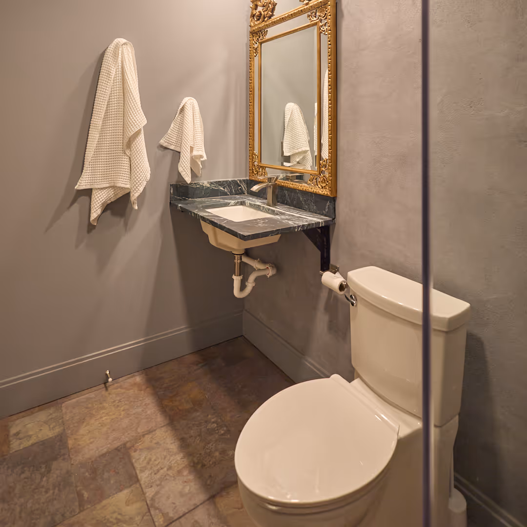 This 1,500-square-foot, two-story custom home is thoughtfully organized for comfort and flow. The main level includes a bedroom and full bathroom, along with an open kitchen and living area and a conveniently placed powder room. A light-filled, open stairwell leads to the second floor, which houses an additional bedroom and bathroom, creating a balanced and flexible layout well suited for urban living.